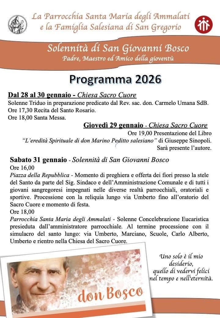 La comunità di San Gregorio di Catania si prepara a vivere un momento sentito di fede e partecipazione in occasione della festa di San Giovanni Bosco in programma sabato 31 gennaio: