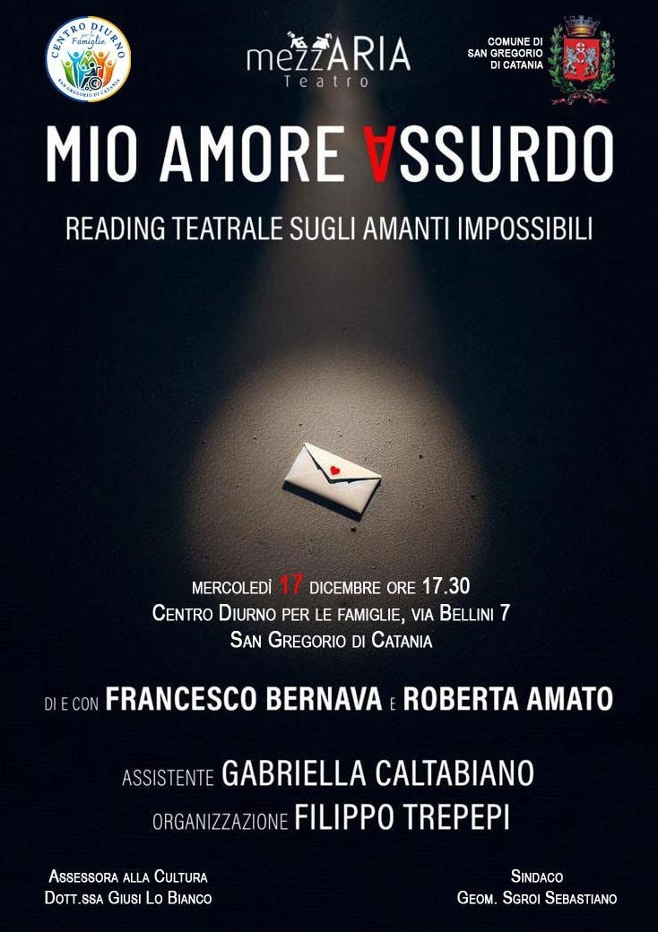 L’Amministrazione Comunale, Assessorato alla Cultura, ha il piacere di invitarvi allo spettacolo teatrale “Mio amore assurdo”